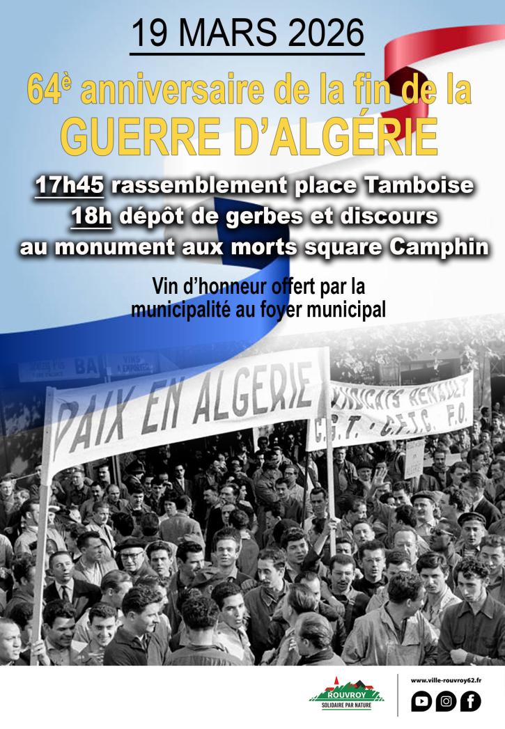 19 mars 2026 - commémoration - 64 ème anniversaire de la fin de la gurre d'Algérie.