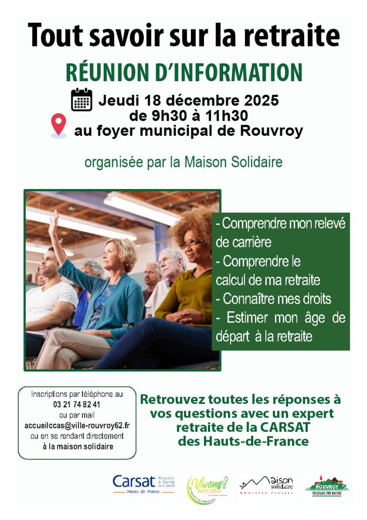 Rendez-vous jeudi 18 décembre 2025 de 9h30 à 11h30 au foyer municipal de Rouvroy.
