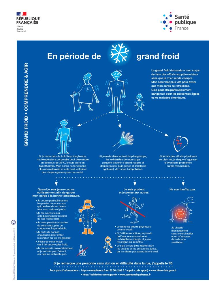 À l’approche de l’hiver, les températures baissent. Lors de fortes variations de températures, il est vivement conseillé d’adapter son quotidien, de revoir les heures de sorties et de préserver sa santé. Il est prudent de vous inscrire ou d’inscrire un proche vulnérable, sur le registre mis à disposition à la Maison solidaire, ou directement en ligne.